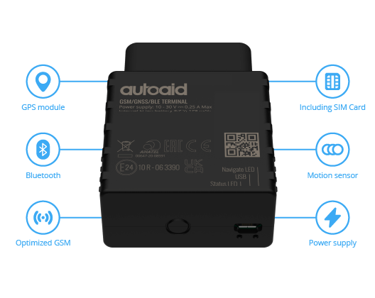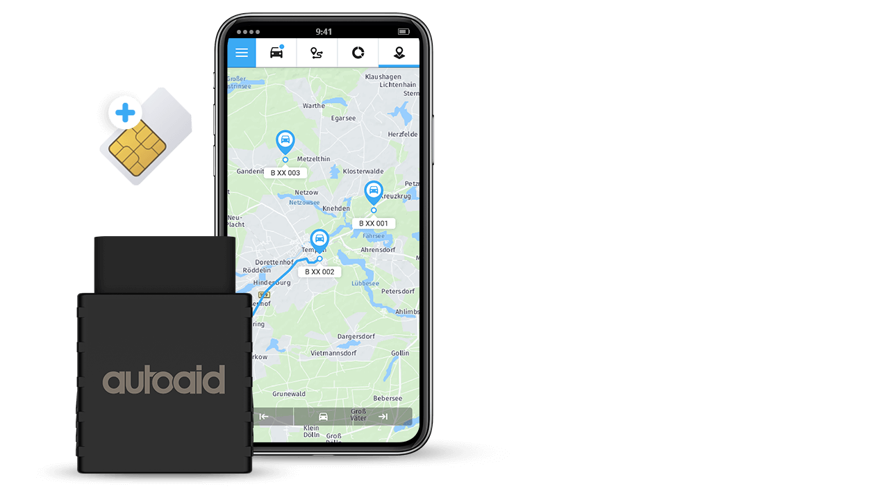 The latest autoaid GPS tracker for your car impresses with even more accurate tracking and the smallest form factor. For more security and protection against theft, it combines the latest technologies with our most popular functions in one device. Thanks to an unlimited range, you can locate your car anywhere in the world, control its use at any time and react immediately in case of theft.